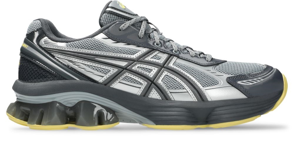 Gel-Kinetic Fluent i farven Glacier Grey/Steel Grey fra Asics. Cool sneaker i grå og gule nuancer. Designet er inspireret af ældre Asics modeller. Den perfekte sneaker til både hverdagsbrug og de lange gåture.