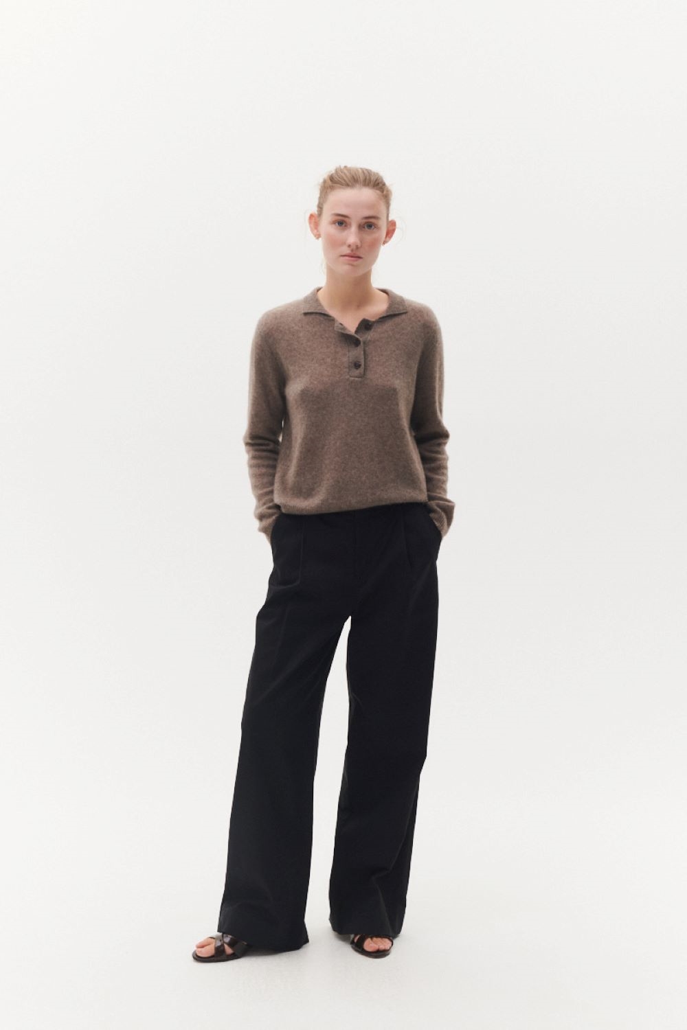 Bukserne lukkes med en indvendig hægte i taljen og er vævet i en eksklusiv blanding af bomuld og lyocell, som giver et tungt og smukt fald. Silhuetten er enkel og tidløs med klassiske skrædderdetaljer.