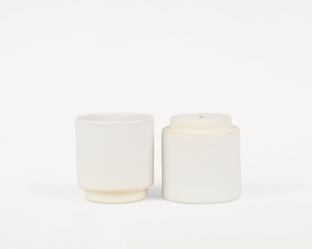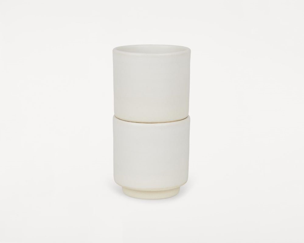 The Otto Ceramic Cups are a set of two stackable stoneware cups with a timeless, round shape and a delicate matte white glaze. Ideal for serving hot or cold beverages, they combine practicality with minimalist design, making them perfect for everyday use or special occasions.
