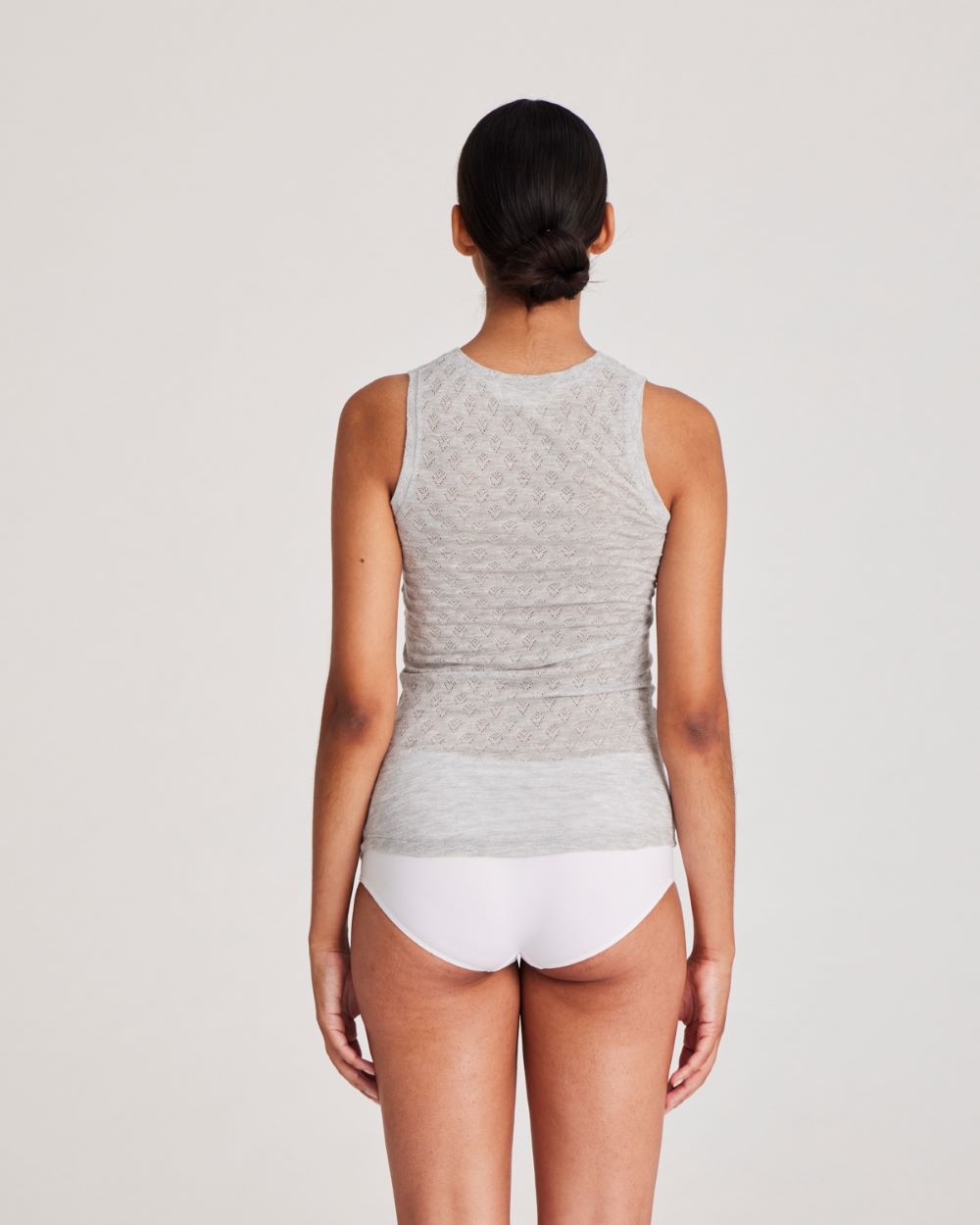 Alberte er en elegant og tætsiddende top fremstillet i en blød og let kvalitet af viskose og silke. Toppen har et fint hulmønster, som giver et feminint og let udtryk, og gør den ideel både alene og som lag-på-lag.