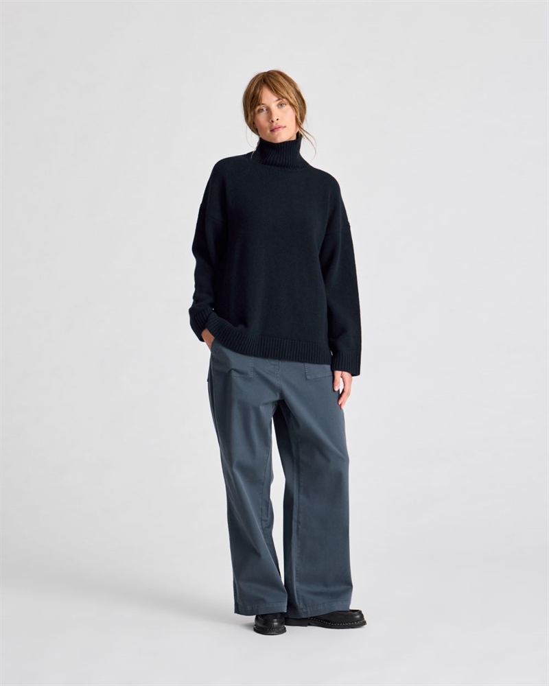 • Detaljer: Rullekrave, dropped shoulders, ribkanter