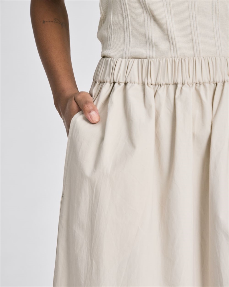 Alice Skirt fra Gai+Lisva er en lang nederdel lavet af 100% økologisk bomuldspoplin. Nederdelen har et let og tidløst udtryk med en afslappet pasform, der gør den behagelig at have på i hverdagen.