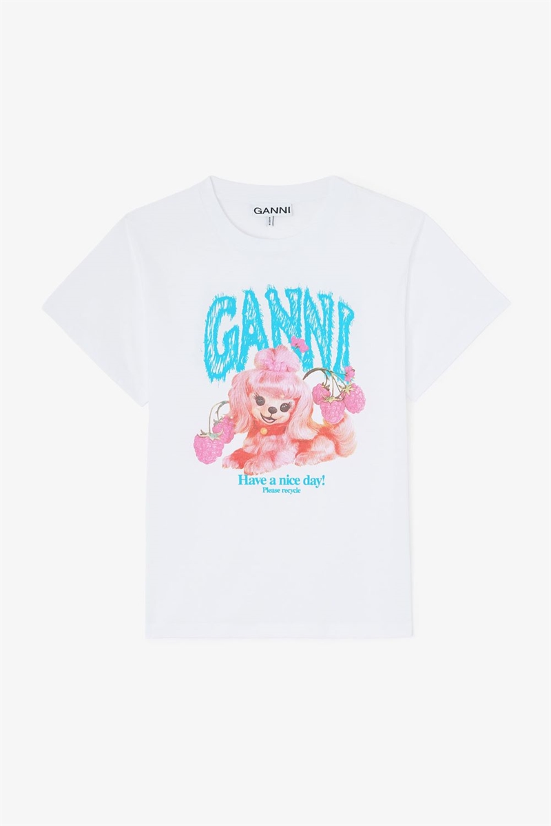 GANNI A1050142 BASIC COTTON T-SHIRT PINK DOG BRIGHT WHITE