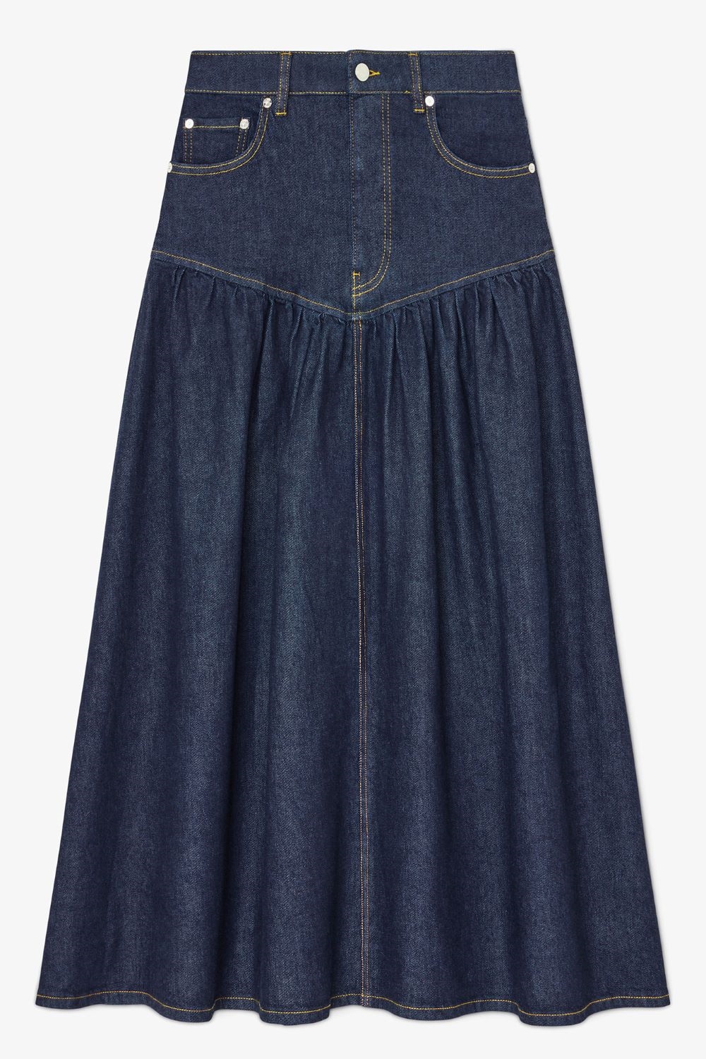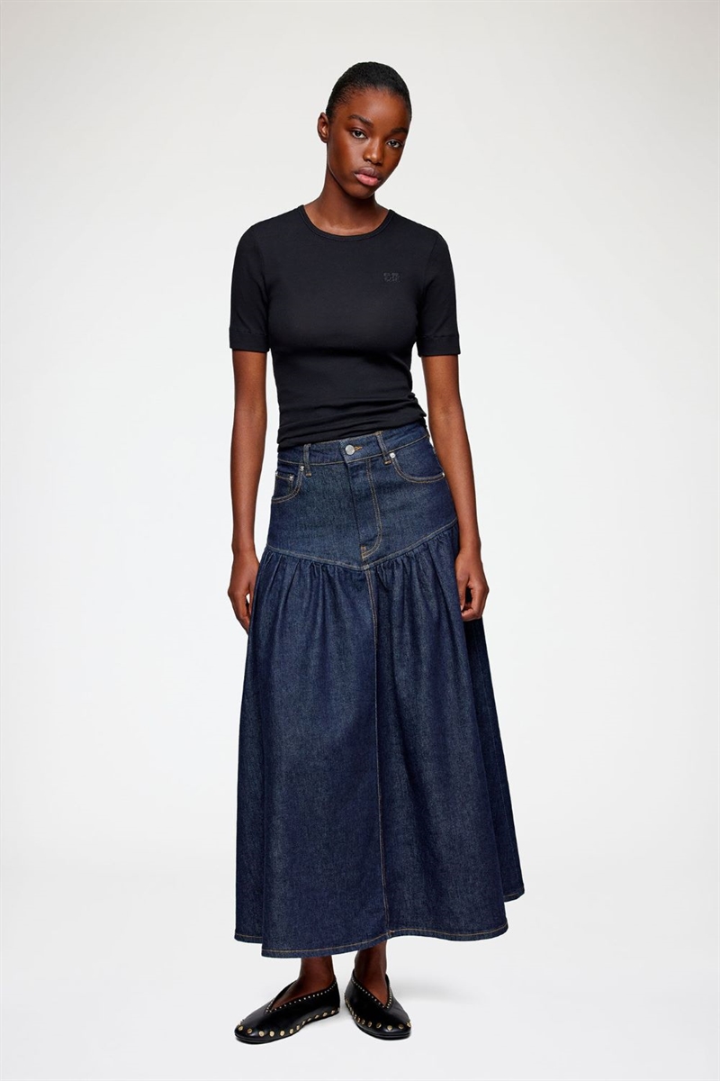 GANNI A1090248 STRETCH DENIM LONG SKIRT RINSE