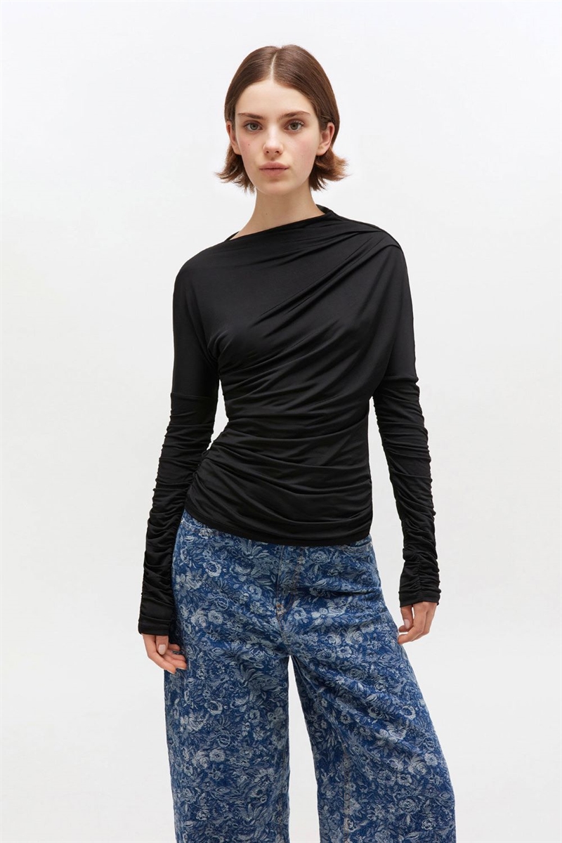 GANNI T4393 TOP MED TILRYNKET EFFEKT BLACK