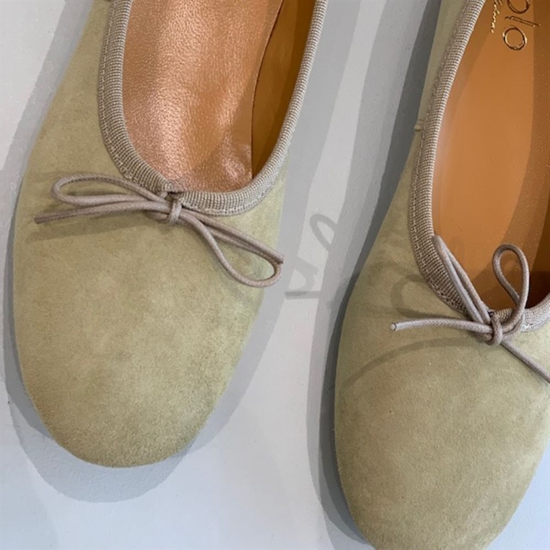 Volcano ballerina fra Lolo the ballerina. klassisk ballerinasko i blødt suede. Modellen Volcano er den model der går lidt højere på foden. Lolo ballerina er håndlavet i Italien. Brug din ballerina til en retro-chik hverdag eller fest.