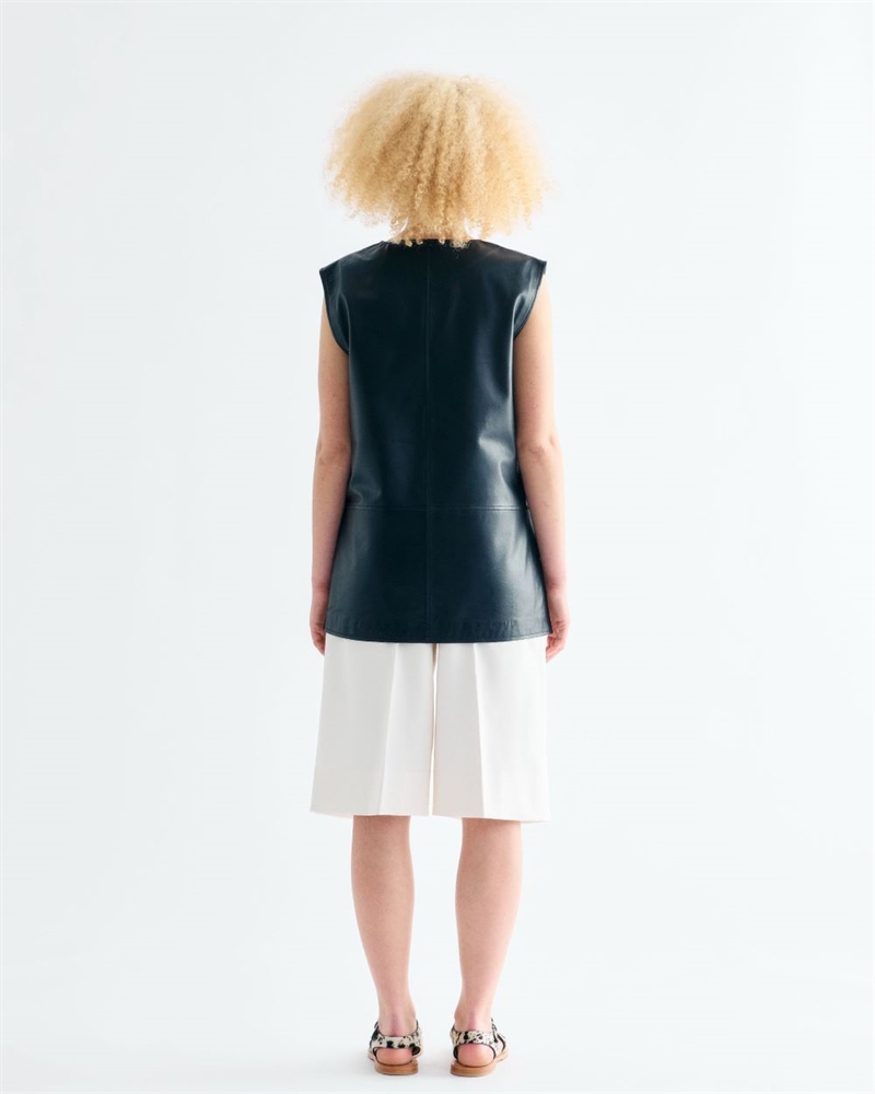 Cara Top fra Lovechild 1979 er en stilren og elegant lædertop i klassisk sort. Designet er skabt til den moderne kvinde, der ønsker et sofistikeret udtryk med fokus på både kvalitet og komfort.