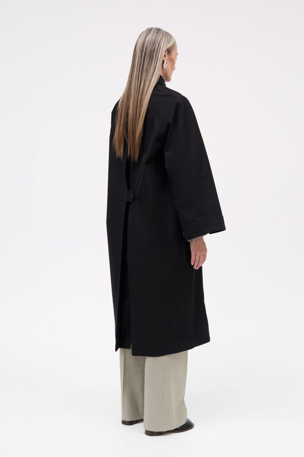 Coraline frakken er designet i et minimalistisk udtryk med en løs silhuet og en lang, elegant længde. Den bonded cotton-kvalitet giver frakken struktur og et moderne fald, samtidig med at den bevarer et let og funktionelt udtryk. En alsidig frakke, der fungerer både til hverdag og mere formelle anledninger.