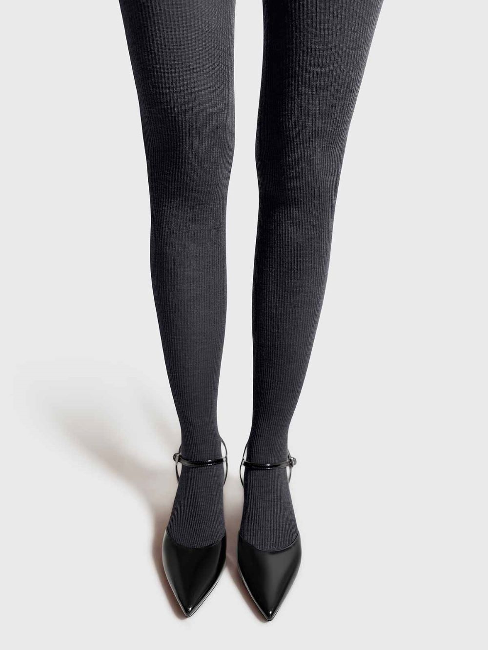 Disse eksklusive ribstrikkede strømpebukser fra MRS. Hosiery kombinerer italiensk håndværk med uovertruffen komfort. De er fremstillet i mulesing-fri merinould, som føles silkeblød mod huden og naturligt regulerer temperaturen. Det elegante ribmønster giver en fleksibel og flatterende pasform, mens den brede elastiske linning sikrer, at de bliver siddende hele dagen – uden at stramme.
