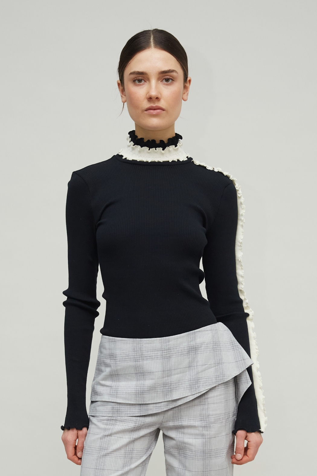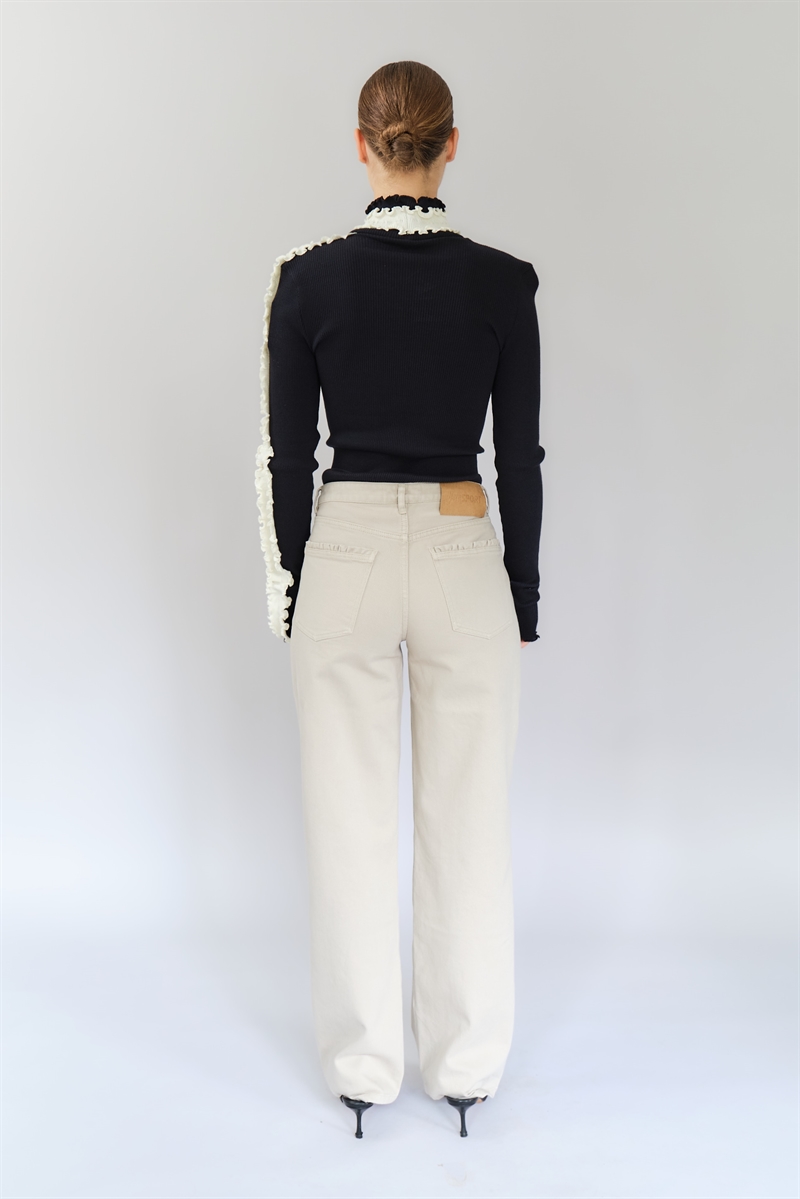 • Sorte ruffle-detaljer for et elegant udtryk