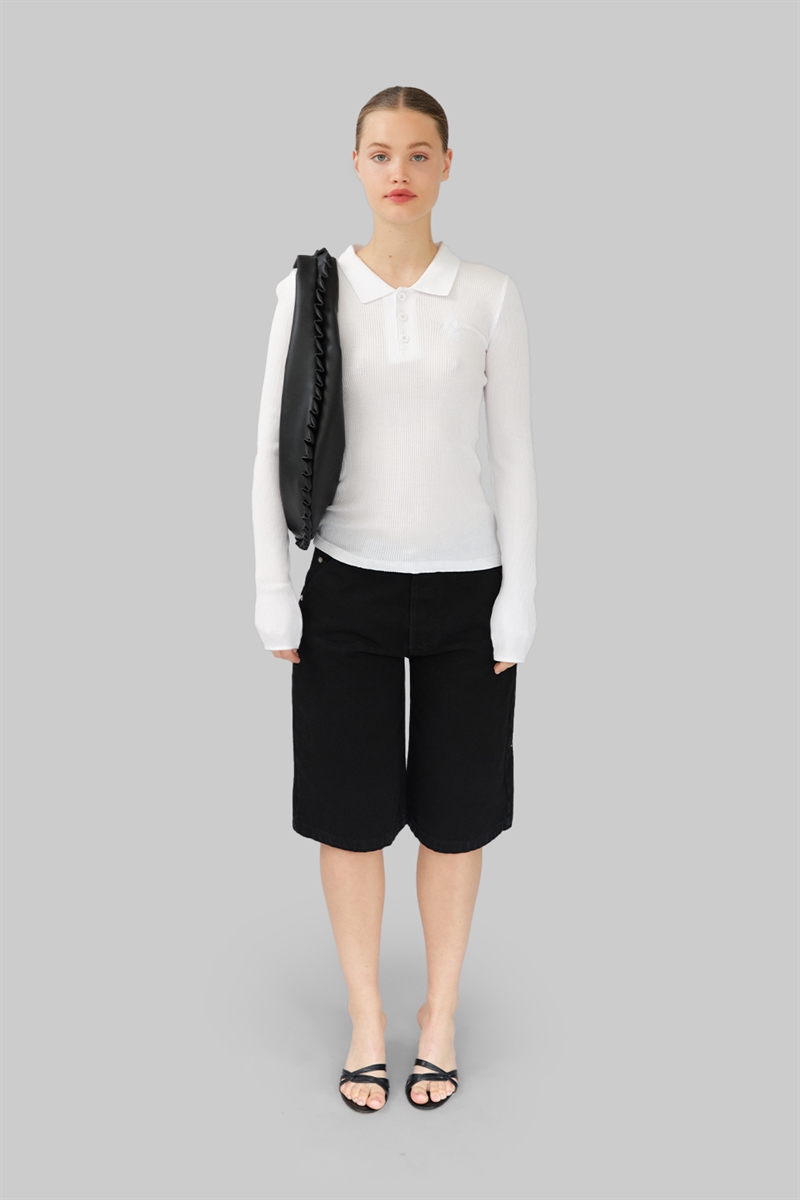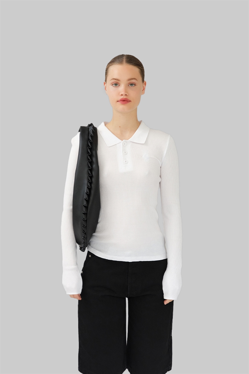 Our Aria Seamless Polo in White is crafted from 100% organic cotton. The seamless polo closely hugs your figure and fits all shapes and sizes with all-over ribbed detailing. It has our OpéraSPORT logo embroidered on the chest. Aria can be styled buttoned up or down.
