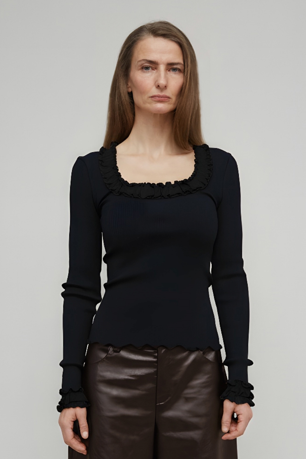 • Sorte ruffle-detaljer