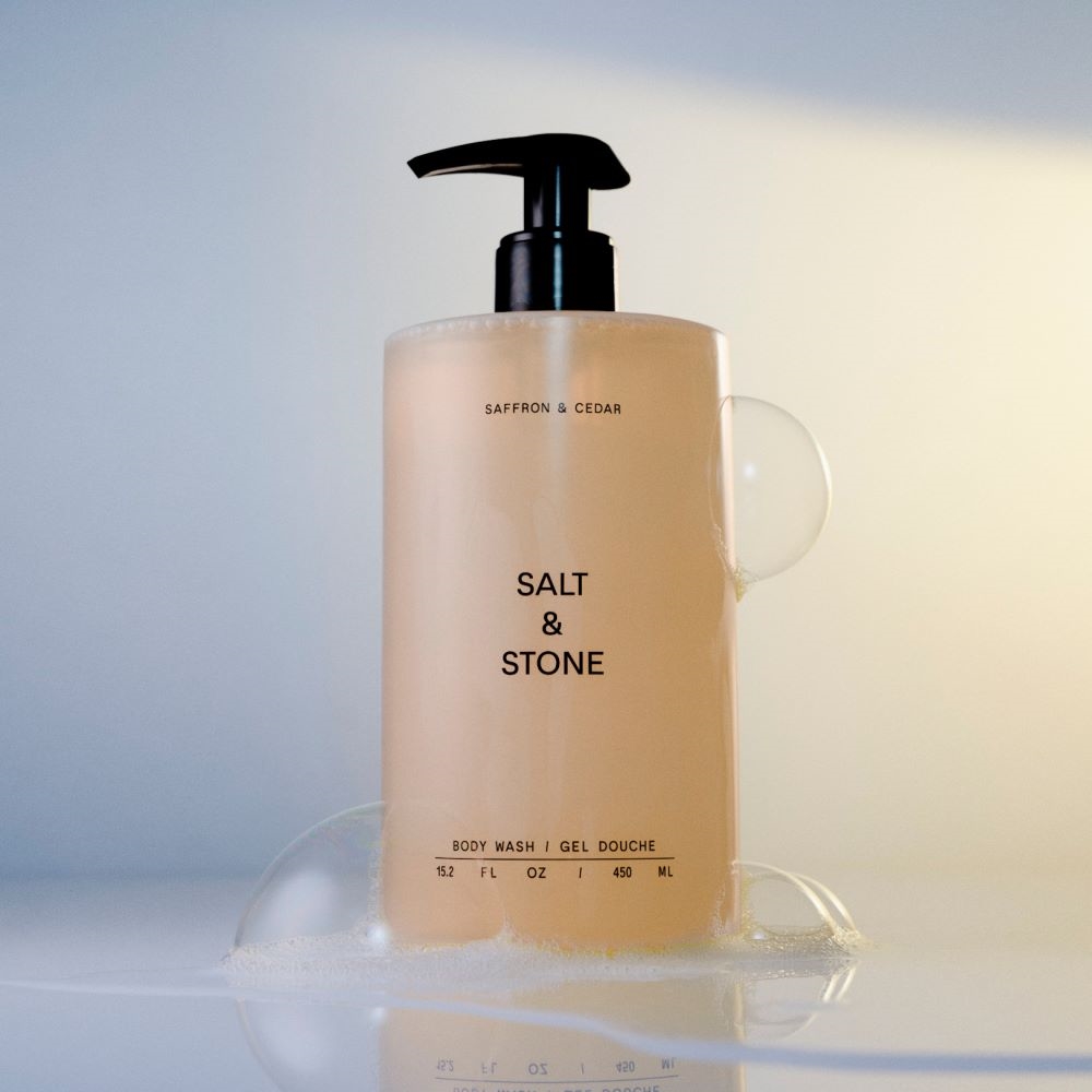 SALT & STONE BODY WASH 450ML SAFRON & CEDAR
