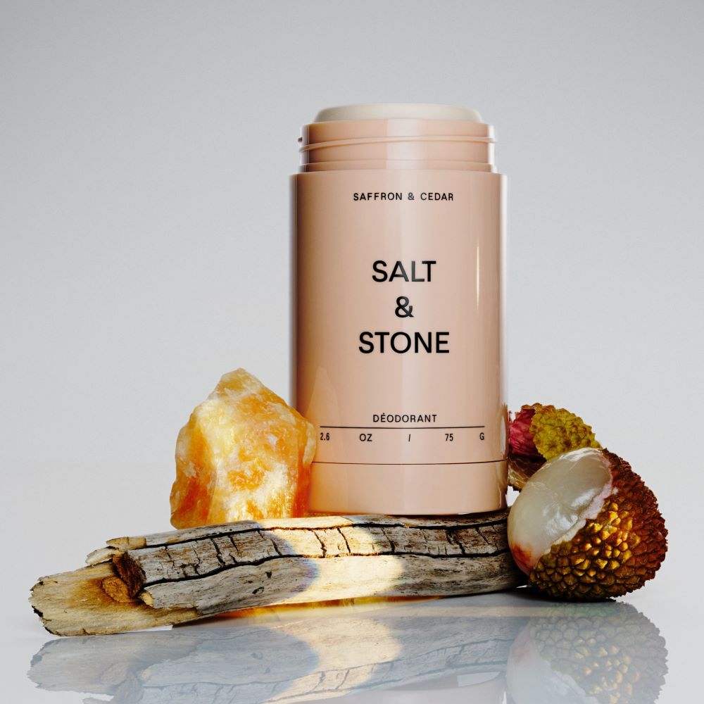 Salt & Stone Deodorant Saffron & Cedar er en prisvindende, aluminiumfri deodorant, der giver op til 48 timers effektiv beskyttelse. Formlen er udviklet til både at neutralisere lugt og pleje huden.