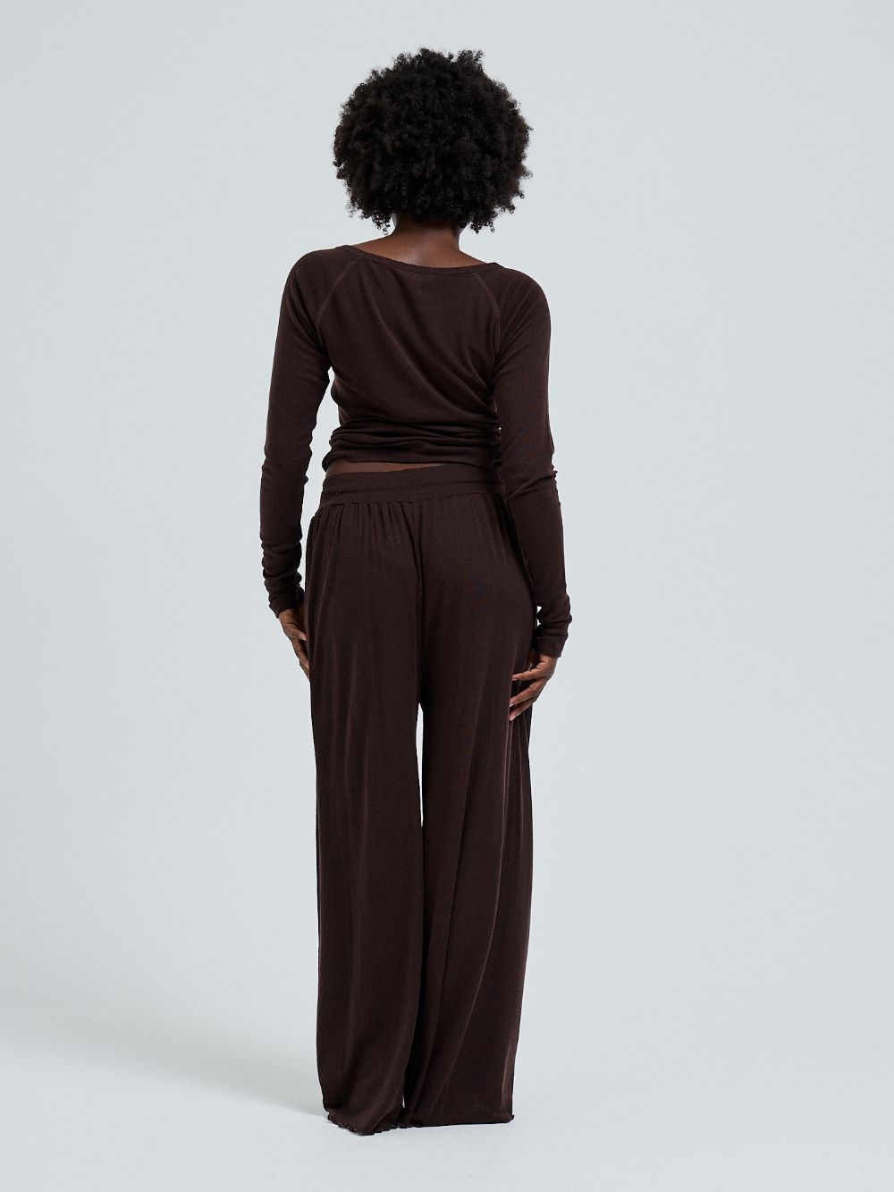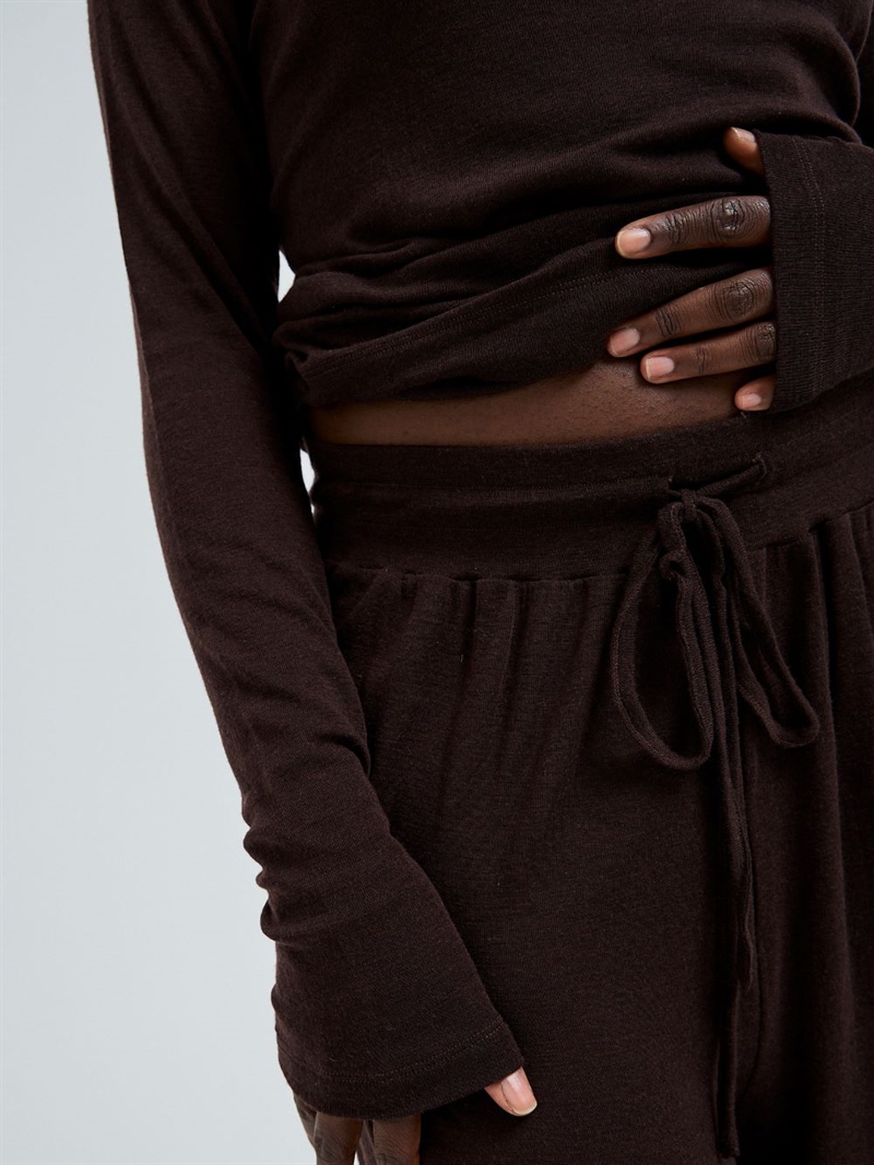 SEAMLESS BASIC WOOLEN BARBERA MERINO WOOL PANTS DARK BROWN