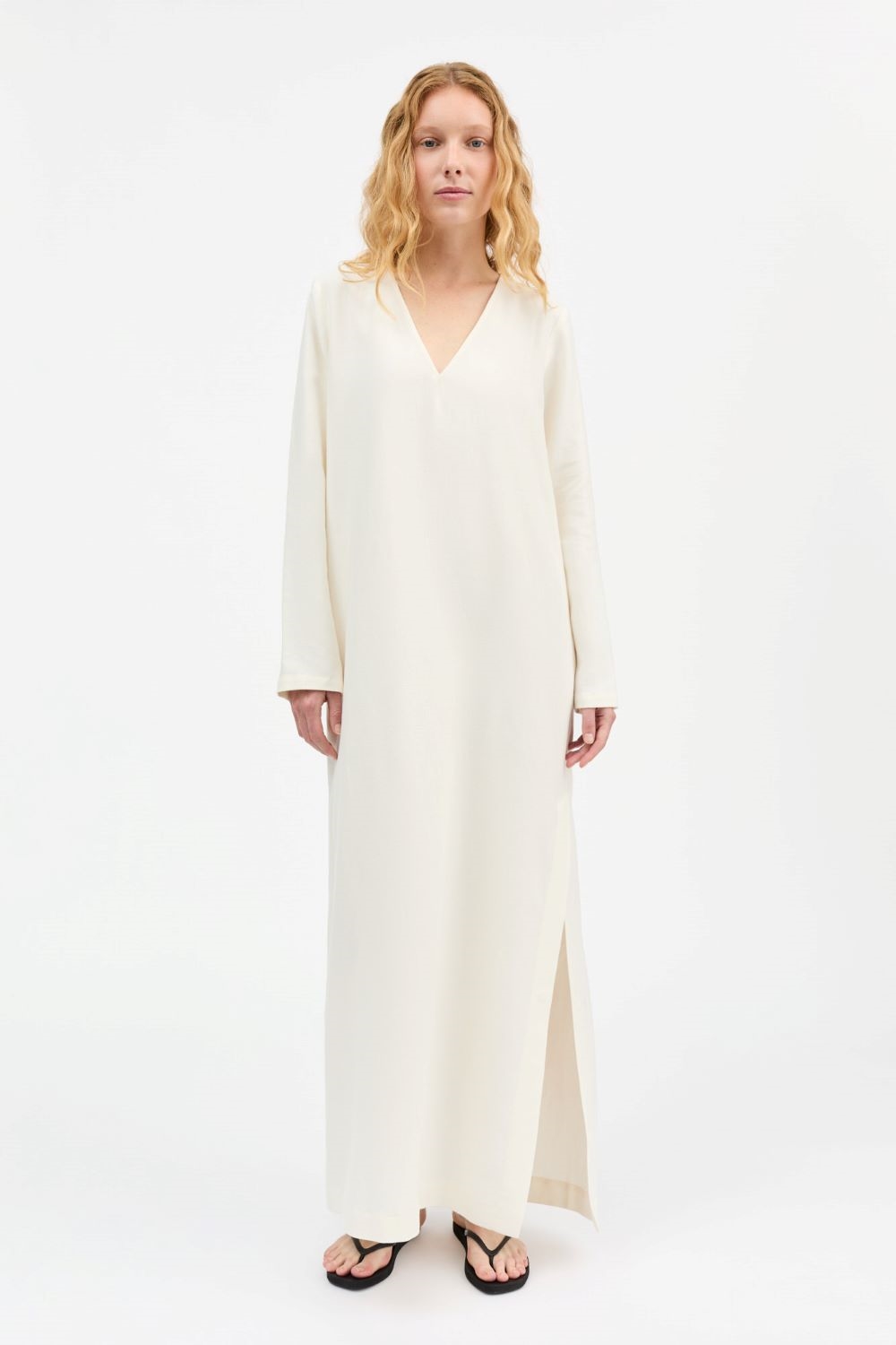 Afslappet maxikjole med V-hals. Perfekt til både hverdag og sommerlige lejligheder med et komfortabelt og elegant look.