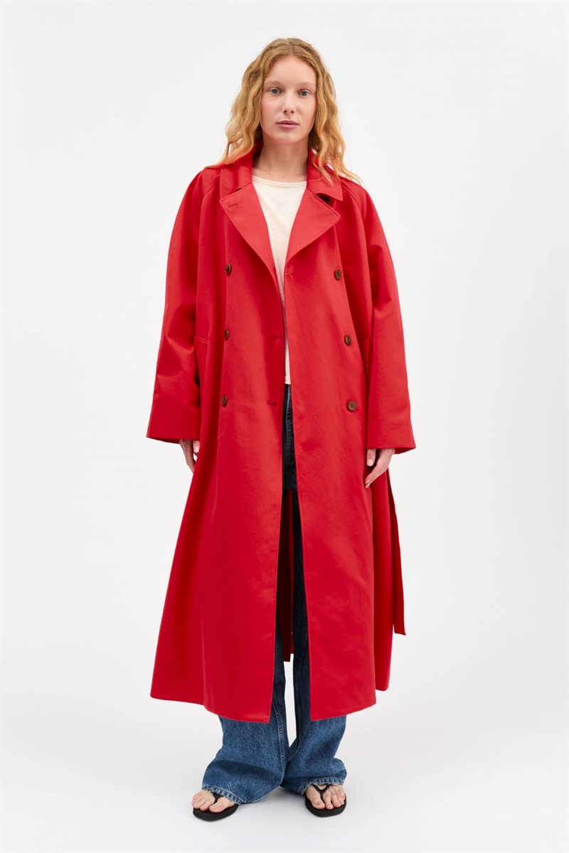 Oversize trenchcoat med dobbeltradet lukning og klassiske trench-detaljer. Perfekt som statement-jakke til overgangsvejret med et moderne twist.