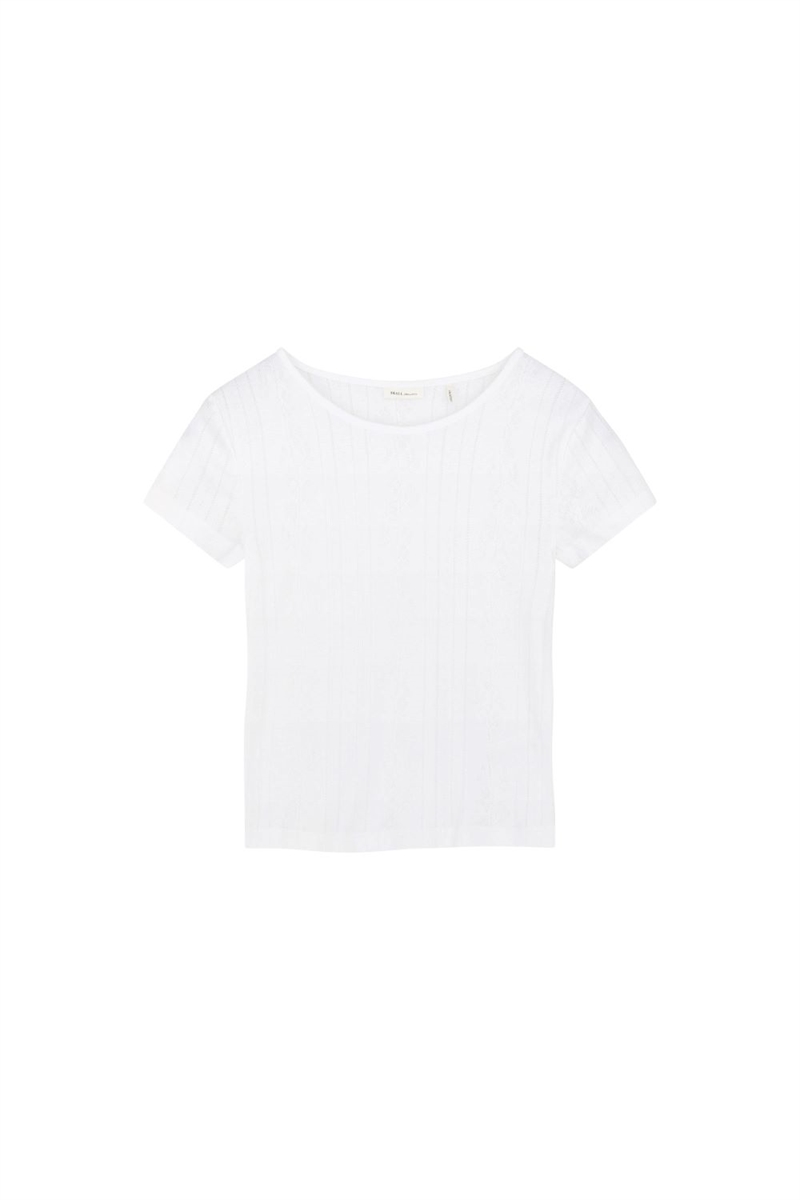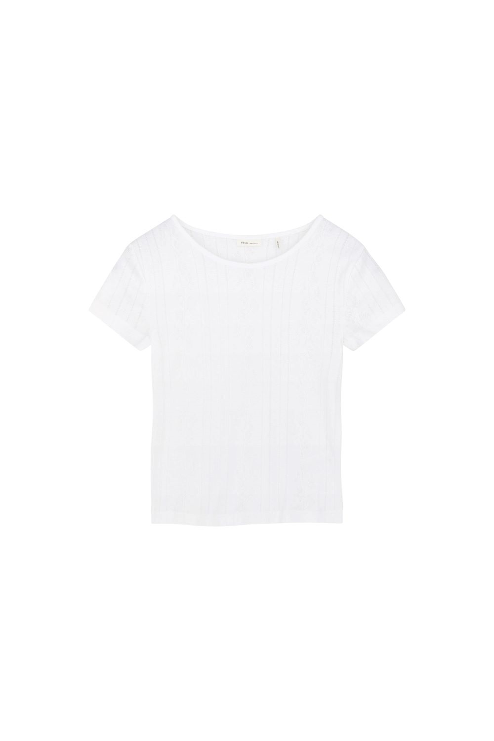 T-shirt i blød bomuldsjersey med fint hulmønster og korte ærmer. En feminin og let basisstyle.