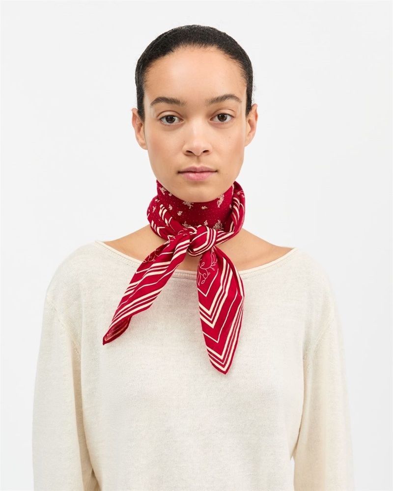 Tørklæde lavet i 100% organic cotton voile. Det fineste tørklæde i farven fiery Red, som kan styles både om halsen og i håret. Tørklædet måler 55x55 cm.